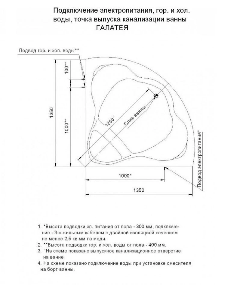 Акриловая ванна Aquatek Галатея 135х135 – самая компактная в линейке угловых моделей производителя. Настоящая находка для санузлов вытянутой формы. При этом имеет объем 270 литров и едва ли уступает габаритным аналогам. Ванна изящная и утоненная, гармонична в каждой детали. В греческой мифологии нимфа Галатея считалась олицетворением спокойного моря. И это прослеживается в волнообразных линиях чаши, напоминающей лагуну. Есть две широкие спинки с подголовниками, удобные бортики для рук, небольшая «заводь» в виде сиденья, созданное для душа, косметических процедур или размещения косметических средств.