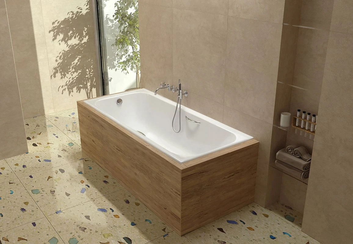 Wotte Start — прямоугольная чугунная ванна, универсальный дизайн, глубокая чаша и зауженный борт.
