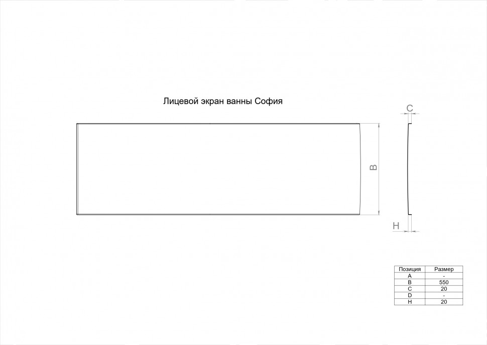 Высота экрана 550 мм