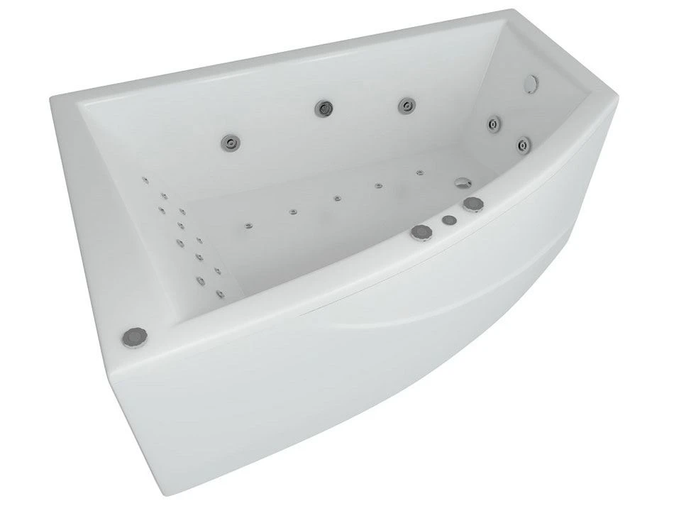 Асимметричная акриловая ванна Aquatek Оракул 180х125 – отличное решение для романтичной пары. При не слишком больших габаритах и достаточно деликатном объеме (340литров) ванну можно принимать вдвоем. Напускайте воду, зажигайте свечи. В зависимости от планировки можно выбрать лево- или правостороннюю модель. А сужение в зоне ног не влияет на комфорт, зато существенно экономит площадь, позволяя при необходимости рядом разместить другую сантехнику или стиральную машину.