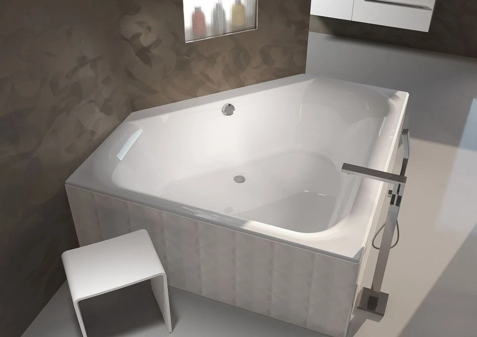 Необыкновенная двухместная ванна Riho Austin 145х145 отличается хорошей эргономикой и оригинальным дизайном. Пятиугольная форма и относительно компактные размеры позволяют найти ей удачное расположение в ванной комнате сложной планировки. Наслаждайтесь приятными минутами отдыха вместе с вашим любимым человеком. Модель имеет покатые спинки, центральный слив и практичные бортики. Покупку можно дополнить удобными стильными подголовниками, а пространство под ванной закрыть специальной панелью, повторяющей очертания корпуса.