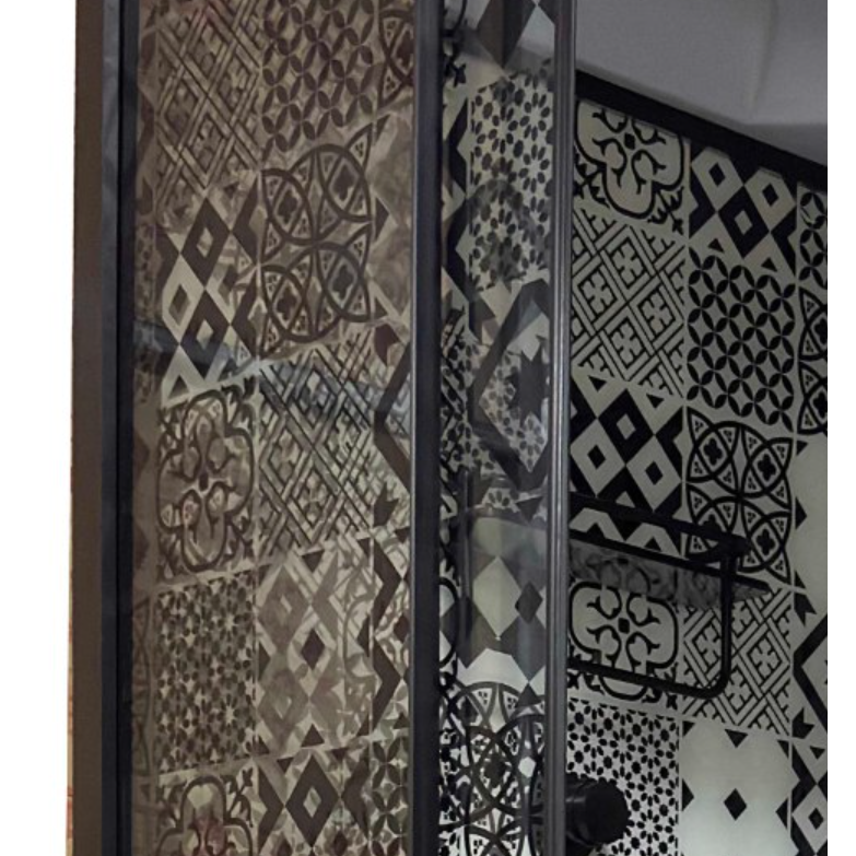 4 мм, с узором "ОБОИ" в черном металлическом каркасе. Высота