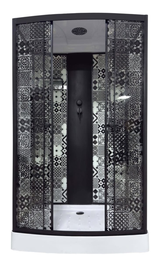 Двери 5 мм. Задние стекла: 4 мм, с узором "ОБОИ" в металлическом отбойники воды, сифон.
