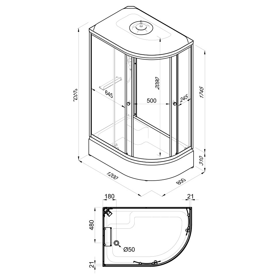 Высота поддона 310 мм