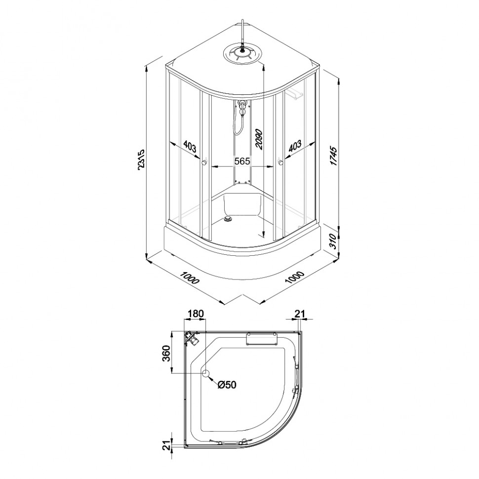 Высота поддона 310 мм