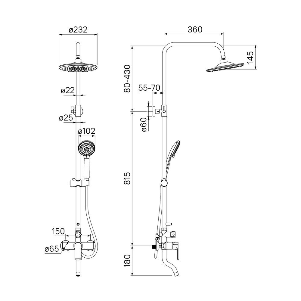 Размер верхнего душа (см)