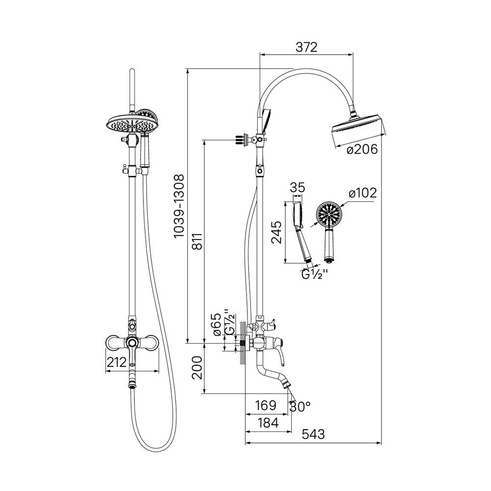 Размер верхнего душа (см)