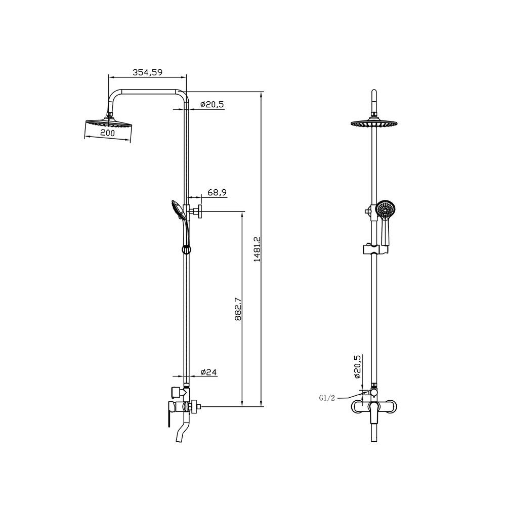 Размер верхнего душа (см)