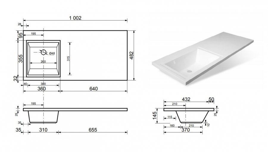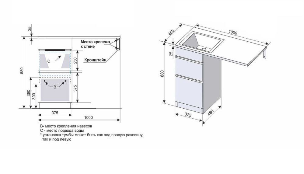 Эстет Полувстраиваемая раковина Даллас 100,2*48,2 L для установки над стиральной машиной