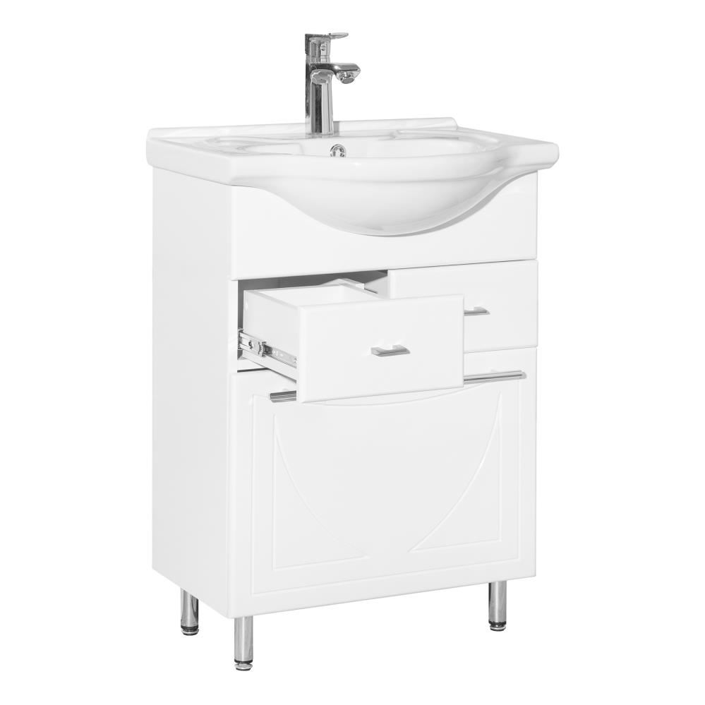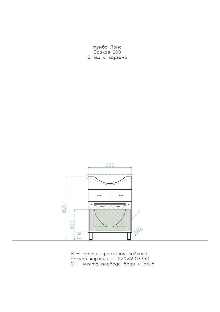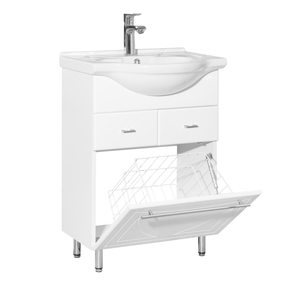 Тумбочка Style Line Лана имеет два выдвижных ящика и откидную корзину. Тумба комплектуется раковиной Байкал 60 производства Santek.
