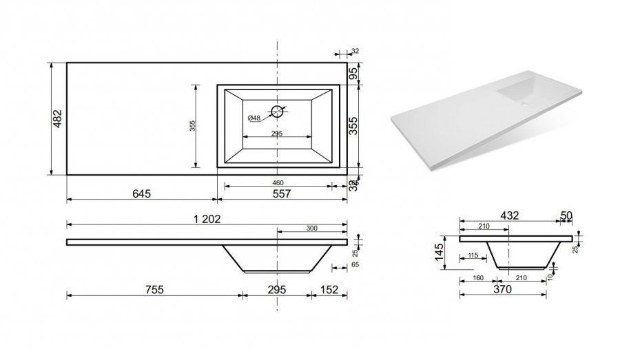 Эстет Полувстраиваемая раковина Даллас 120,2*48,2 R для установки над стиральной машиной